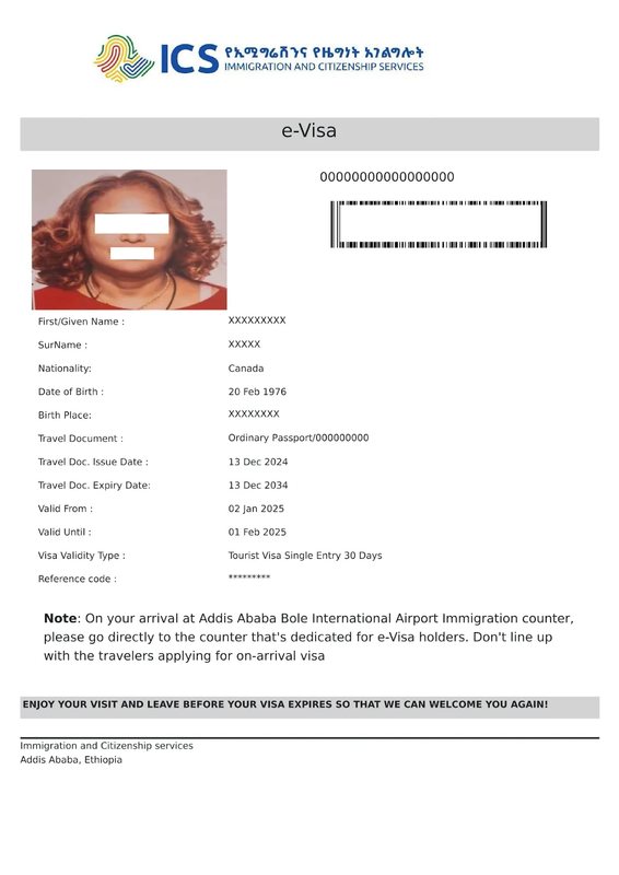 Once approved, the eVisa is mailed electronically as a PDF document. Passengers must print a copy to be presented at immigration upon arrival in Ethiopia.